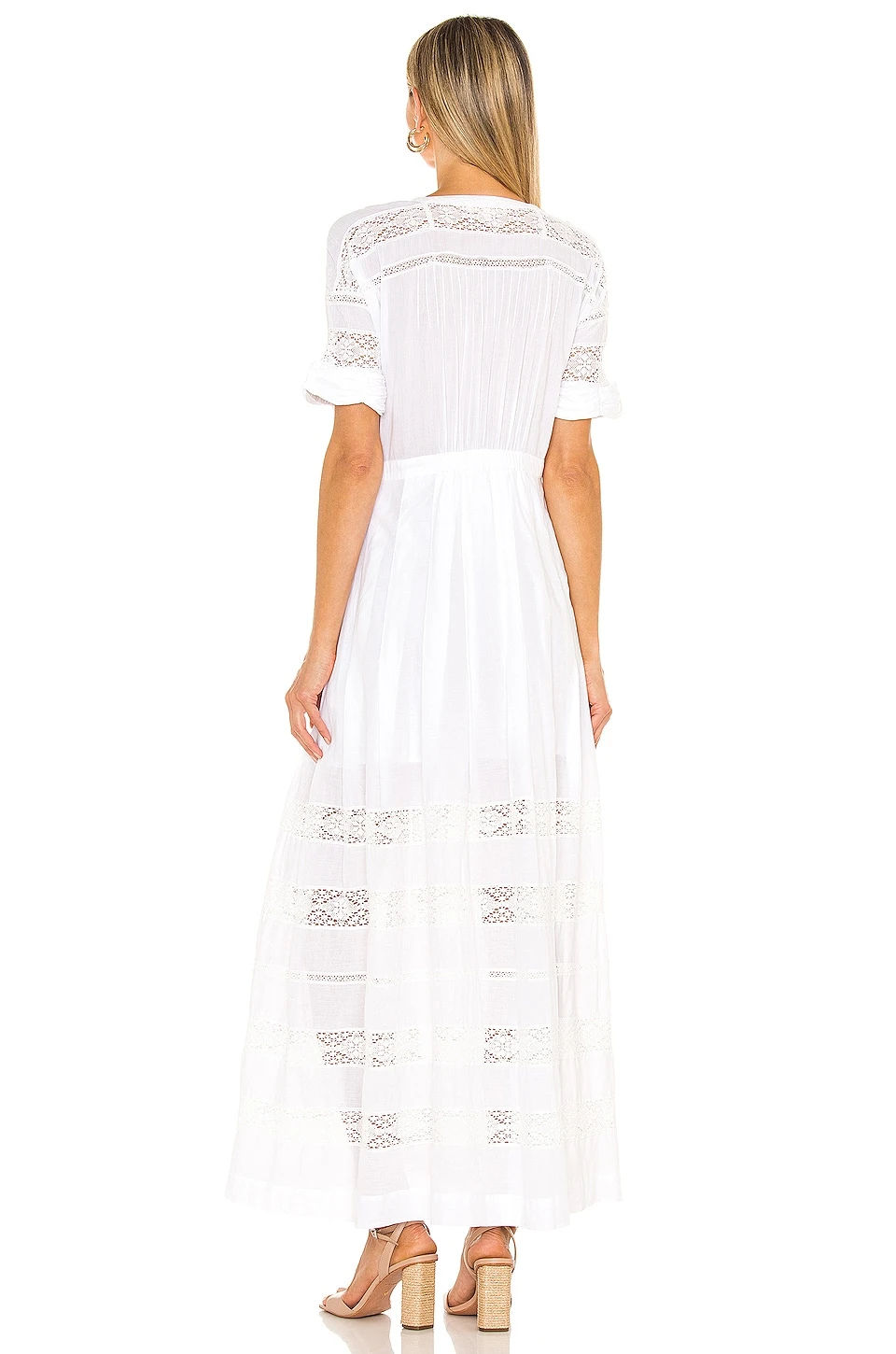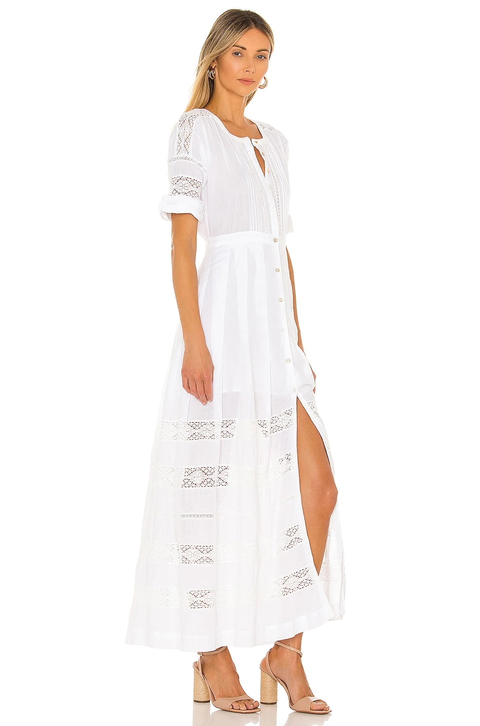 Self & Lining: 100% cotton. Partially lined. Button front closures. Embroidered lace trim accents. Godet pleated detail. Revolve Style No. LESH-WD113. Manufacturer Style No. LD113-175.