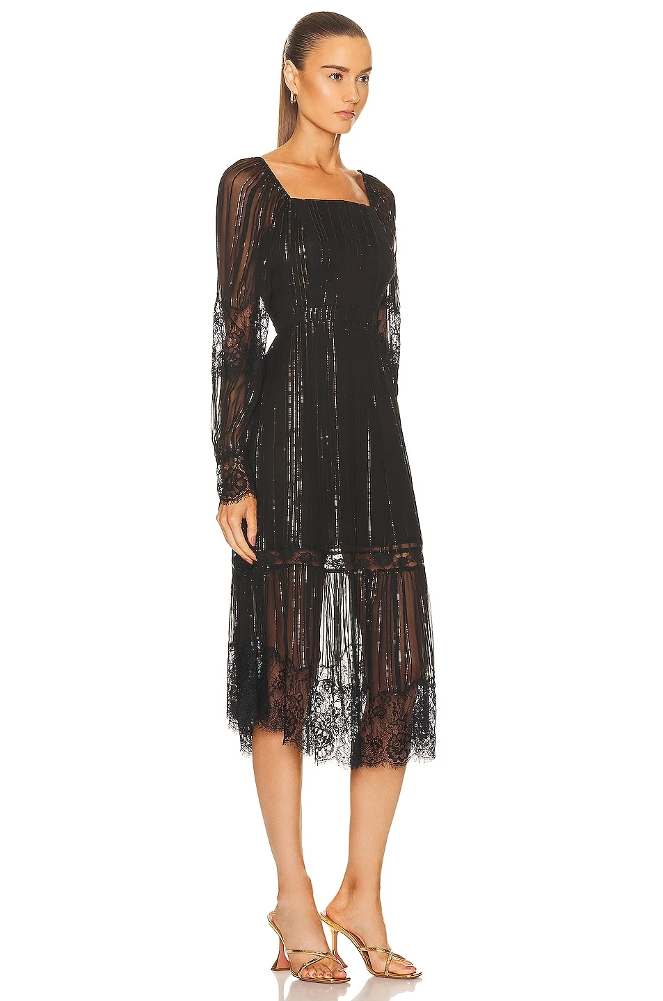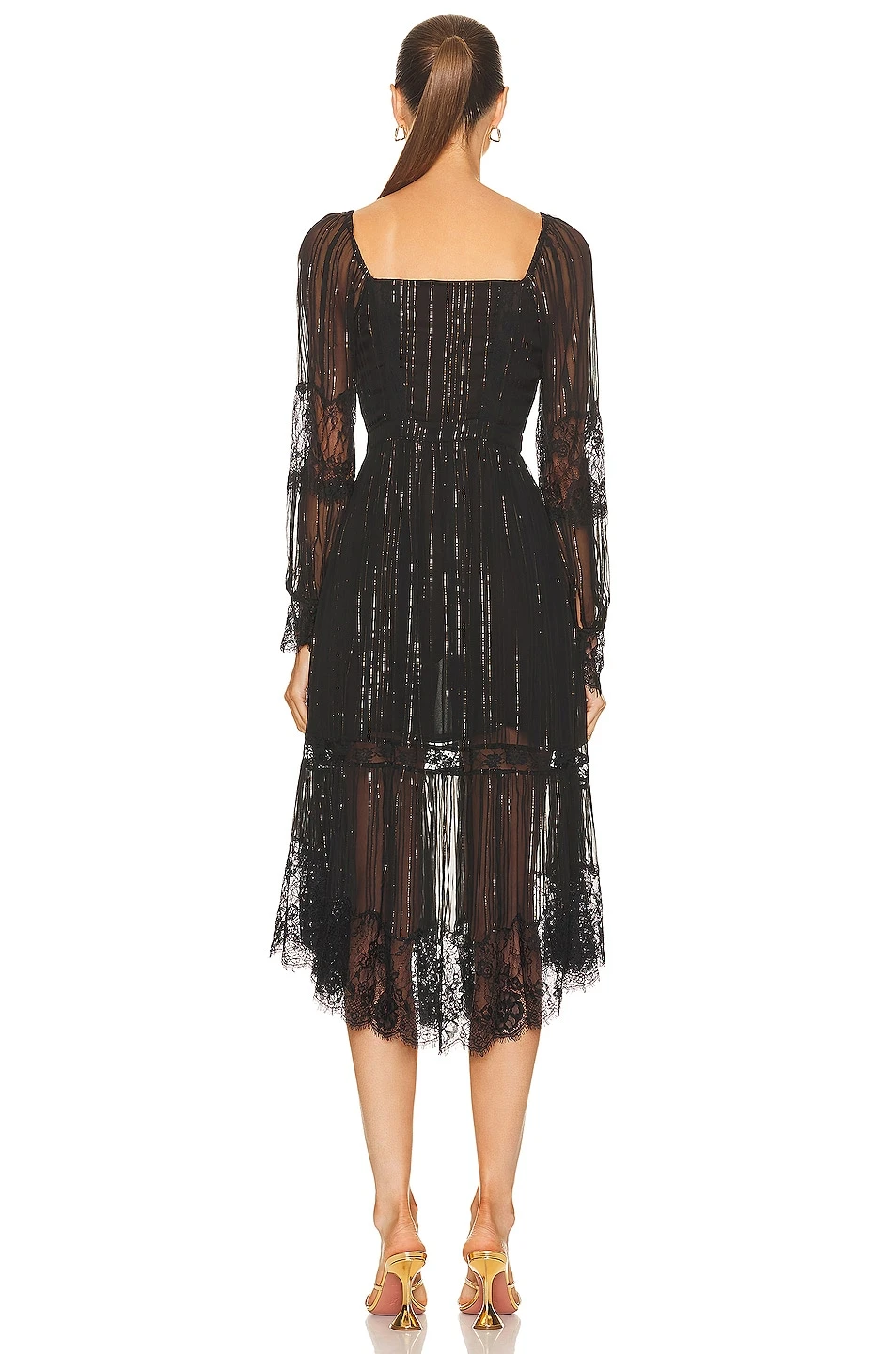 - Semi-sheer fabric with metallic threading throughout