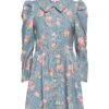 Plain weave, Frills, Deep neckline, Floral design, Short sleeves