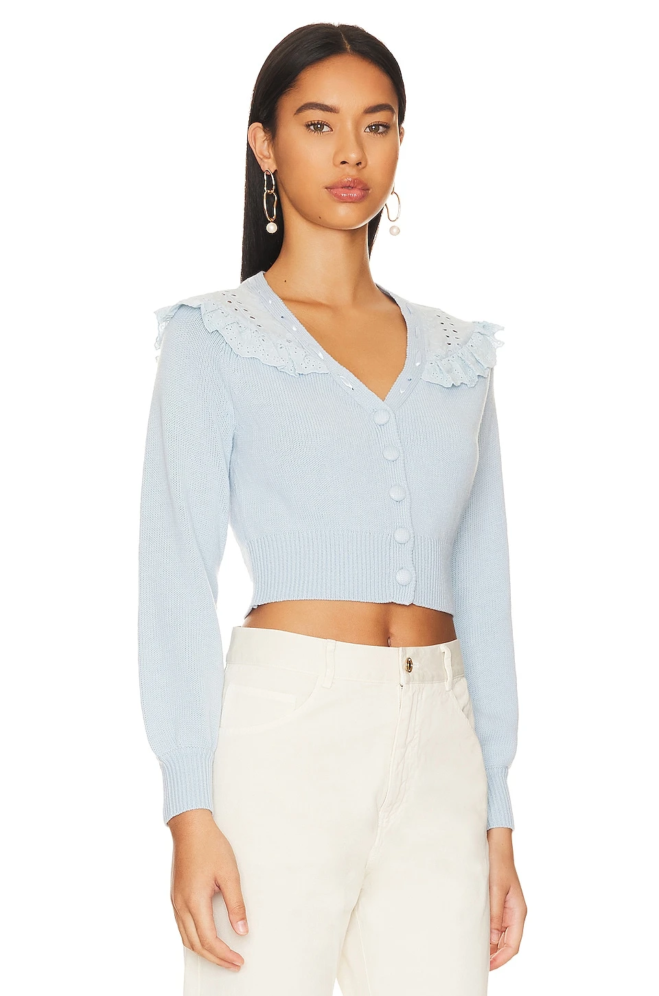 LoveShackFancy Peggy Cardigan Hydrangea Blue