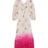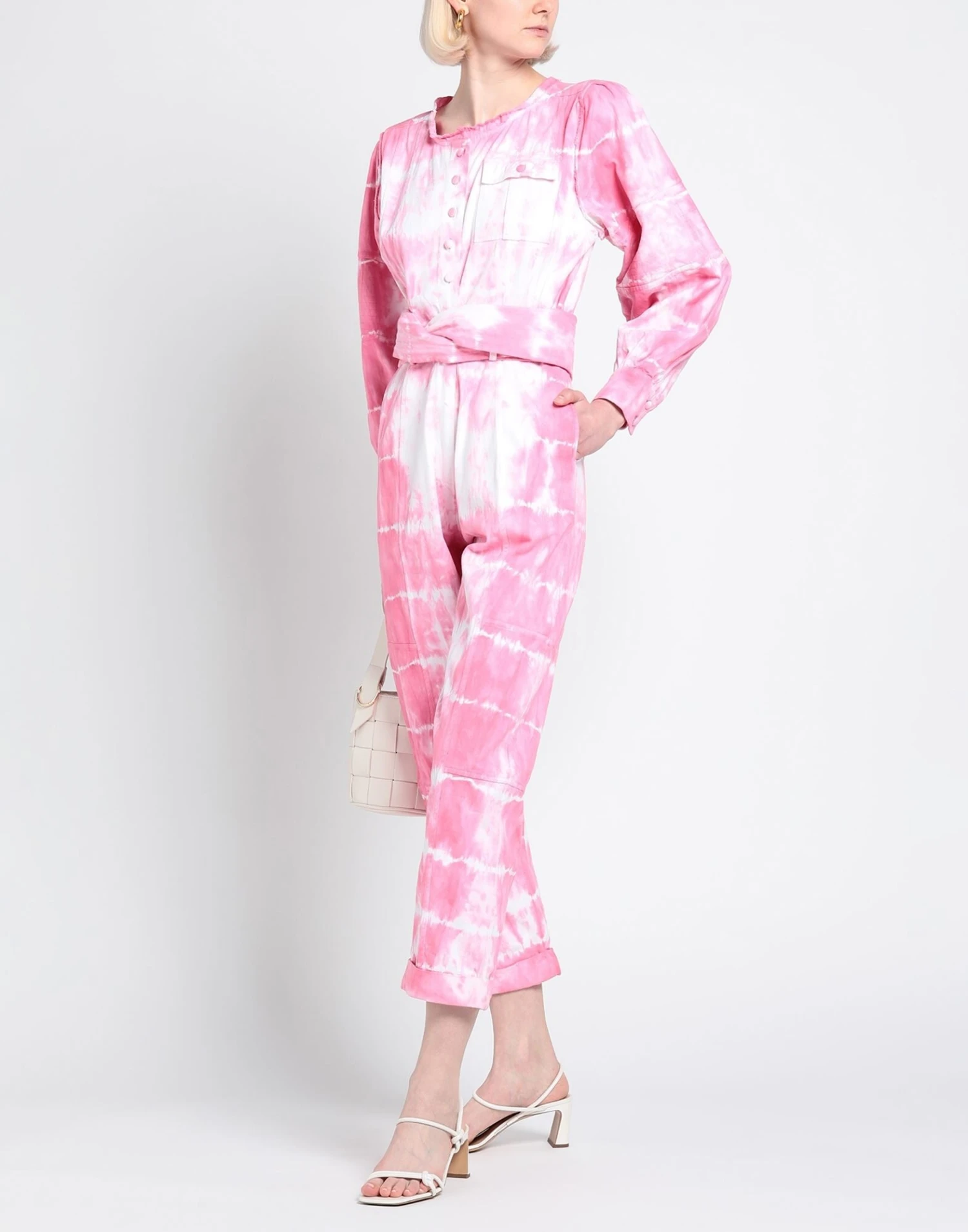 Round collar, Belt, Long sleeves, Multicolor Pattern, Button closing