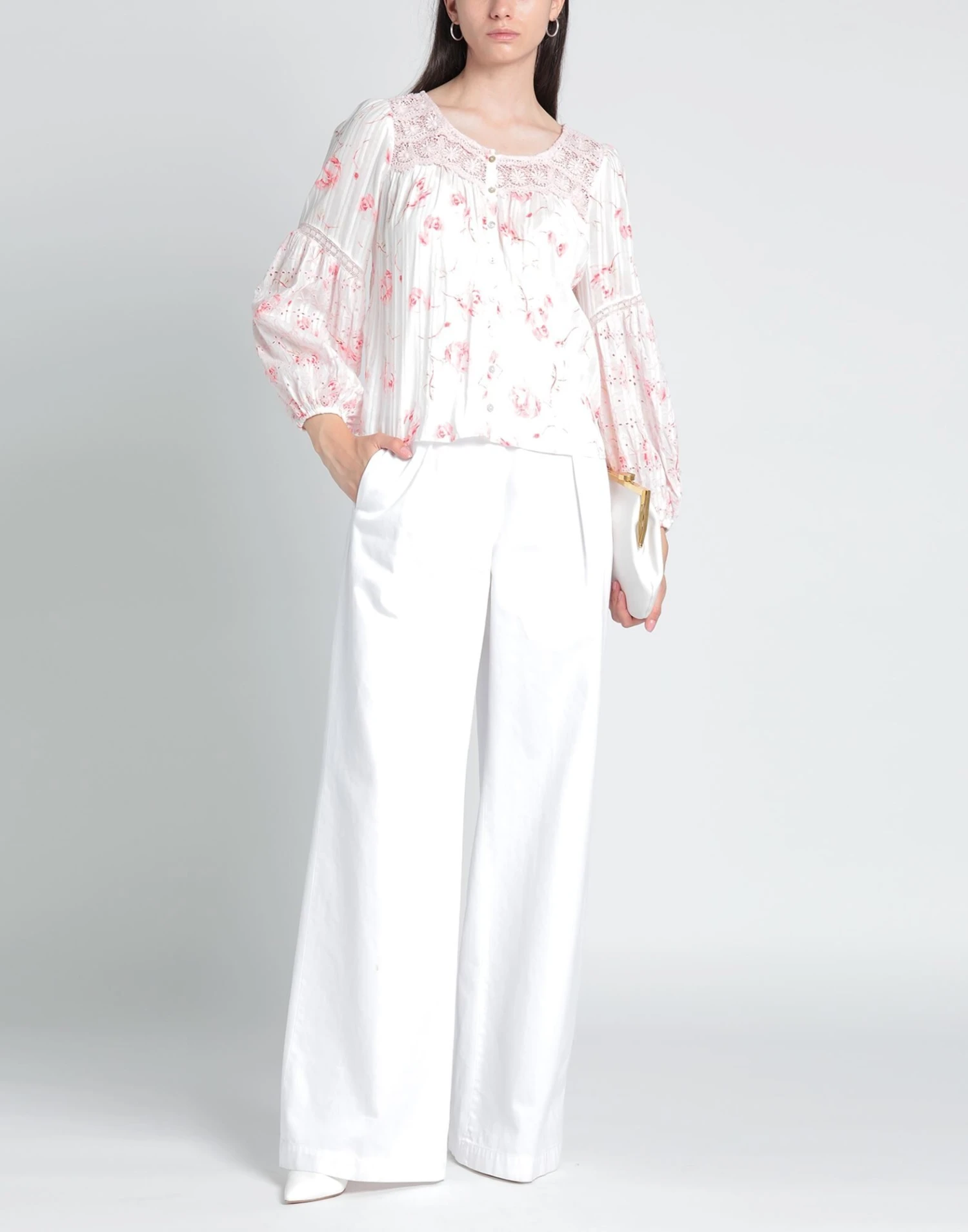 Plain weave, Floral design, Lace, Frills, Round collar, Long sleeves