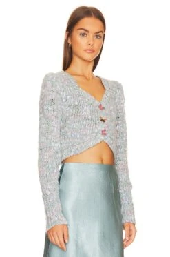 LoveShackFancy Saundria Crop Cardigan Galaxy Blue