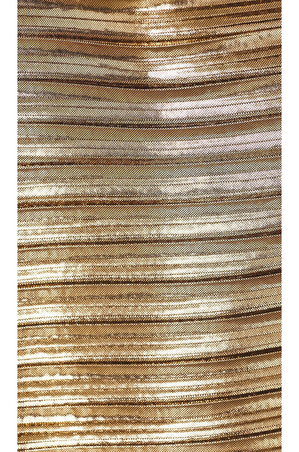 Elastic trim at shoulders - Sheen lam fabric with floral applique at center bust