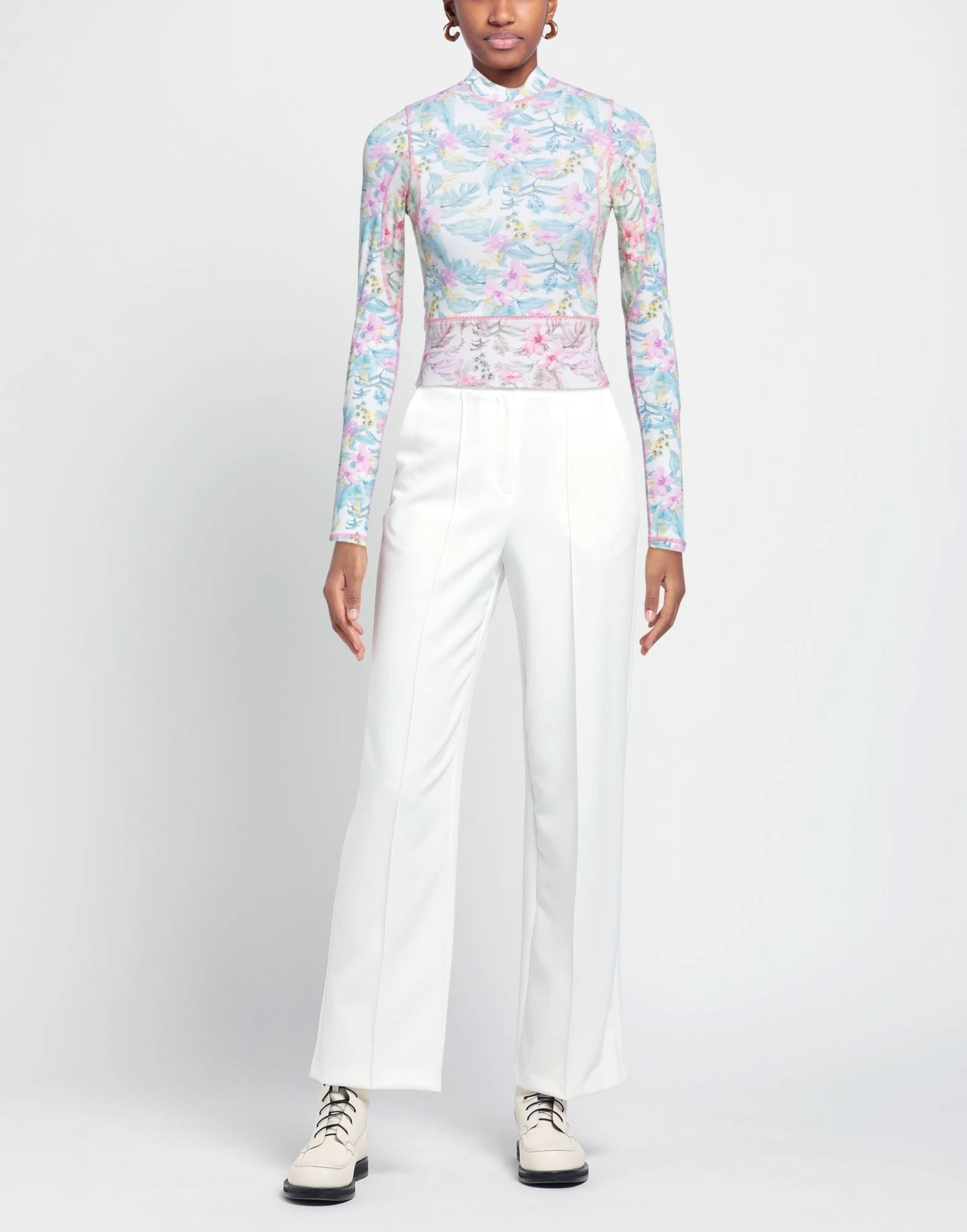 Synthetic jersey, Long sleeves, Mandarin collar, Floral design, No appliqués