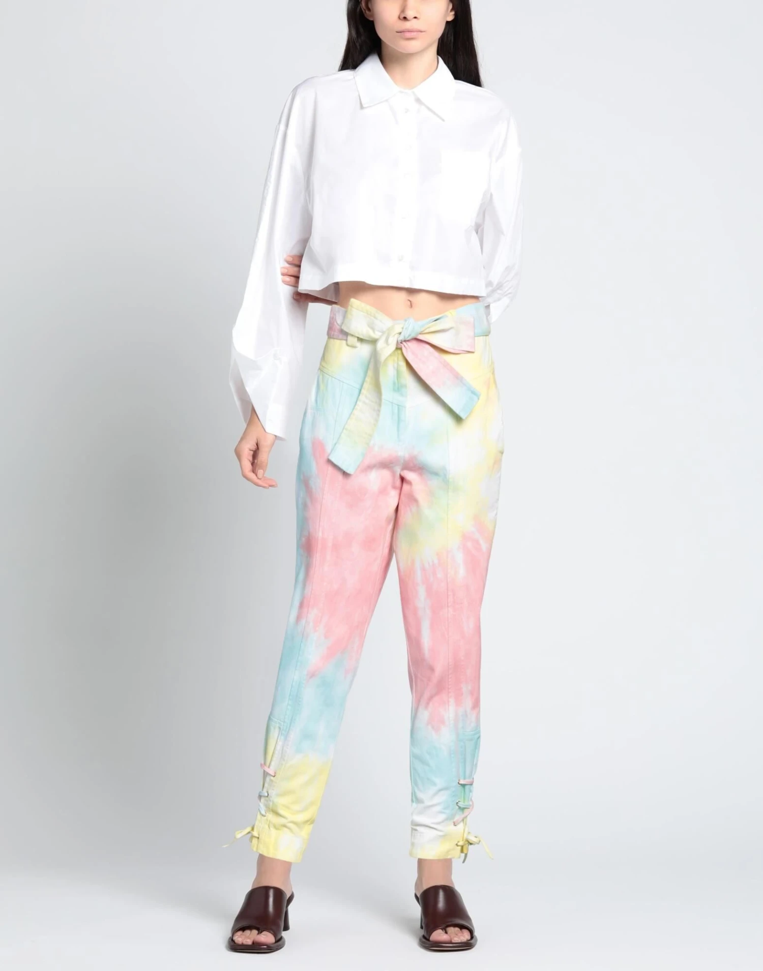 Gabardine, Regular fit, Sash, Multicolor Pattern, Tapered leg