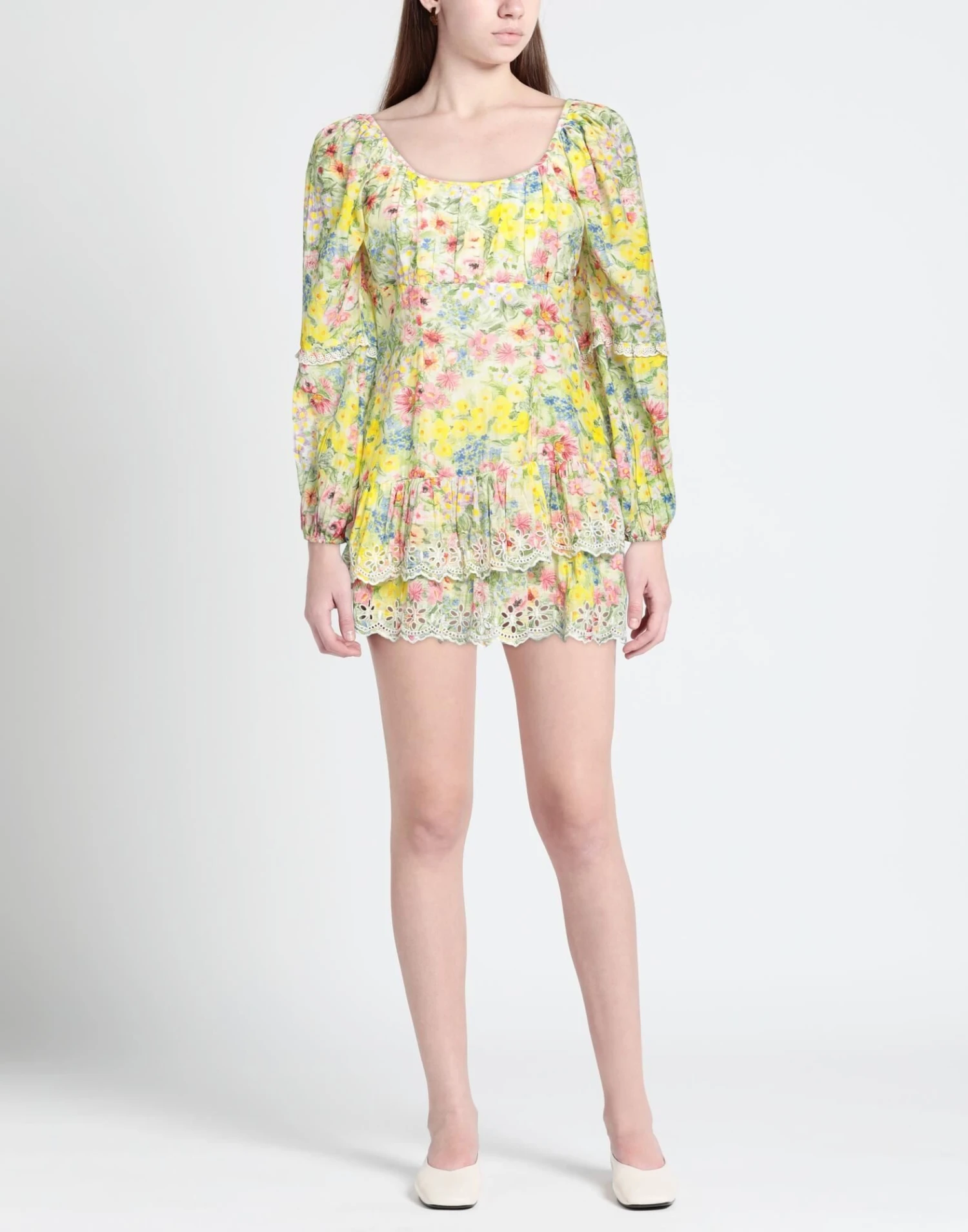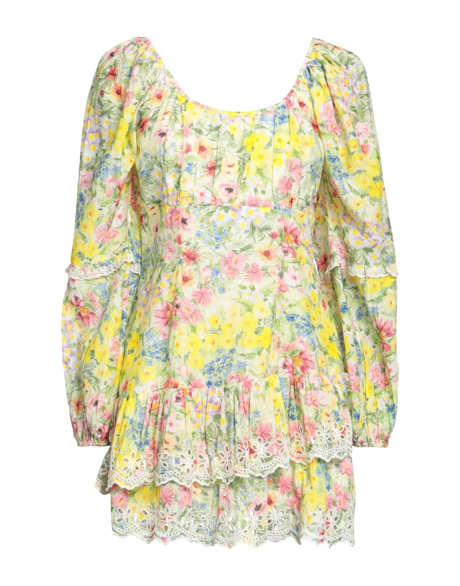 Ruffles, Floral design, Long sleeves, Wide neckline